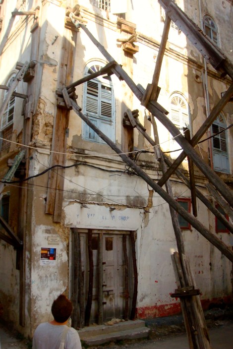 Aside from the use of coral stone, homes in Zanzibar are most well known for the grand wooden doors that mark their entrances. Rounded tops are Indian in style and rectangular tops are Arab-style doors. Most are ornately carved, many with the phrases of the Qur’an and some with brass studs traditionally used to protect against elephant raids in India. In general, the greater the door, the greater the owner’s wealth and dignity. Sadly, many of the oldest buildings are starting to collapse under the weight of their history and are now held up with (rickety) wooden supports.